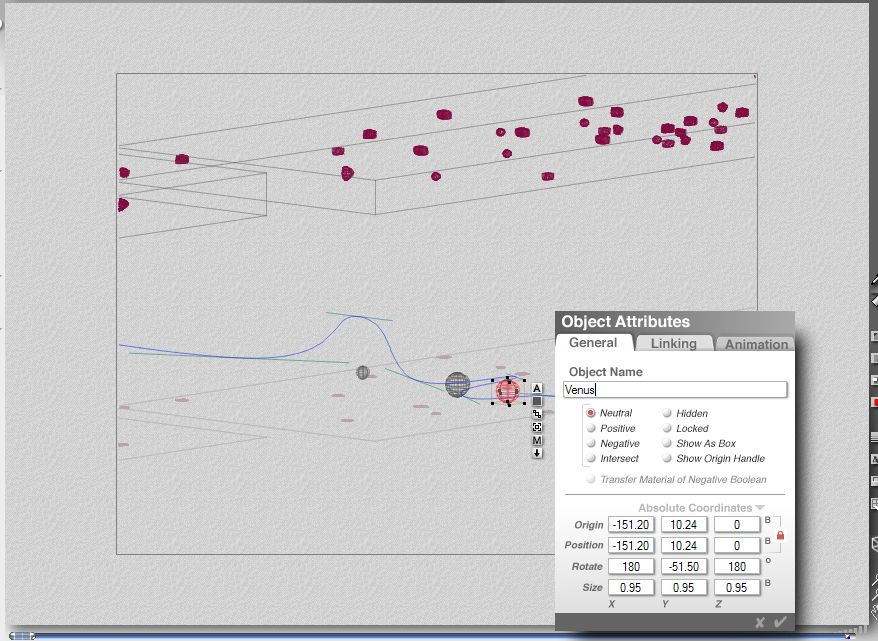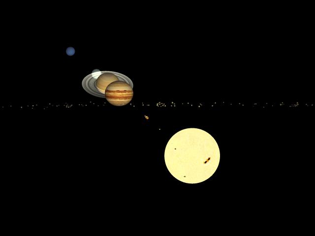 All of the planets were created using sphere objects in Bryce. To add some realism to the animation, all planets are sized exactly as their